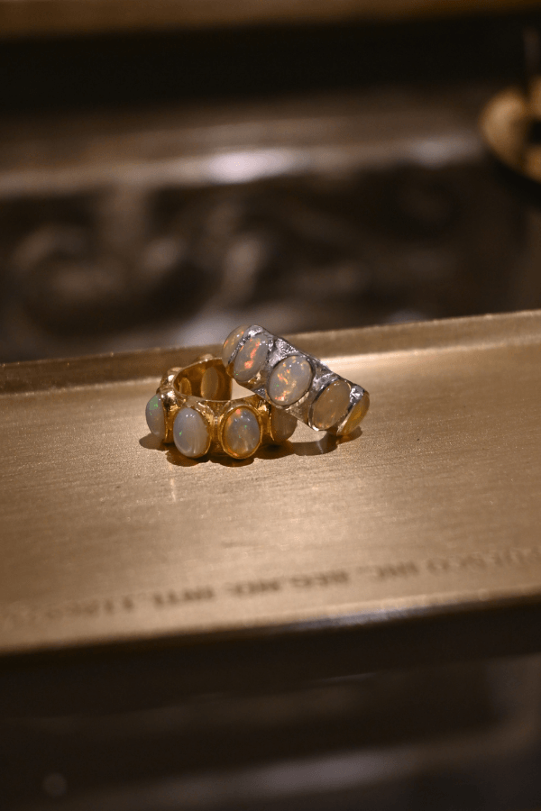 Ear cuff fatti a mano in argento e argento dorato, impreziositi da opali australiani selezionati uno ad uno.