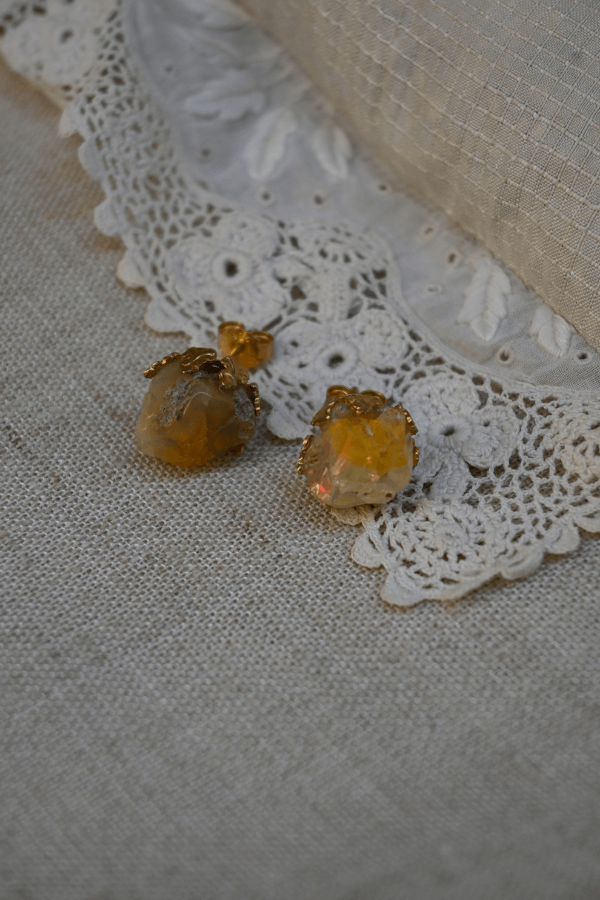 Orecchini a perno con pietra grezza e montatura dorata dal profilo organico. Ogni pezzo è unico per forma e texture, disponibili con radice di rubino o opale naturale. Un design essenziale ma d’impatto, perfetto per chi ama i contrasti materici e i colori intensi.