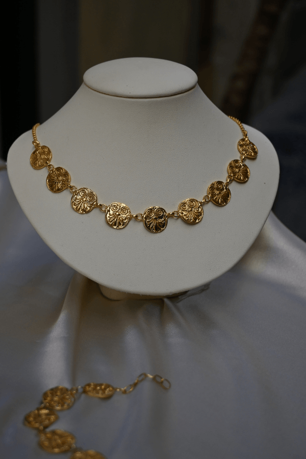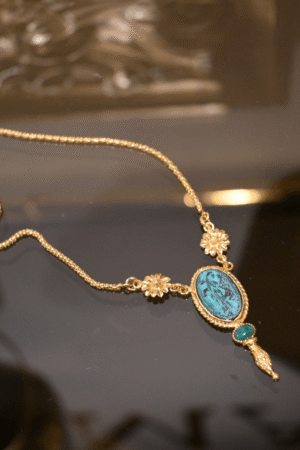 A necklace that feels drawn from a distant time, with a warm and authentic presence.