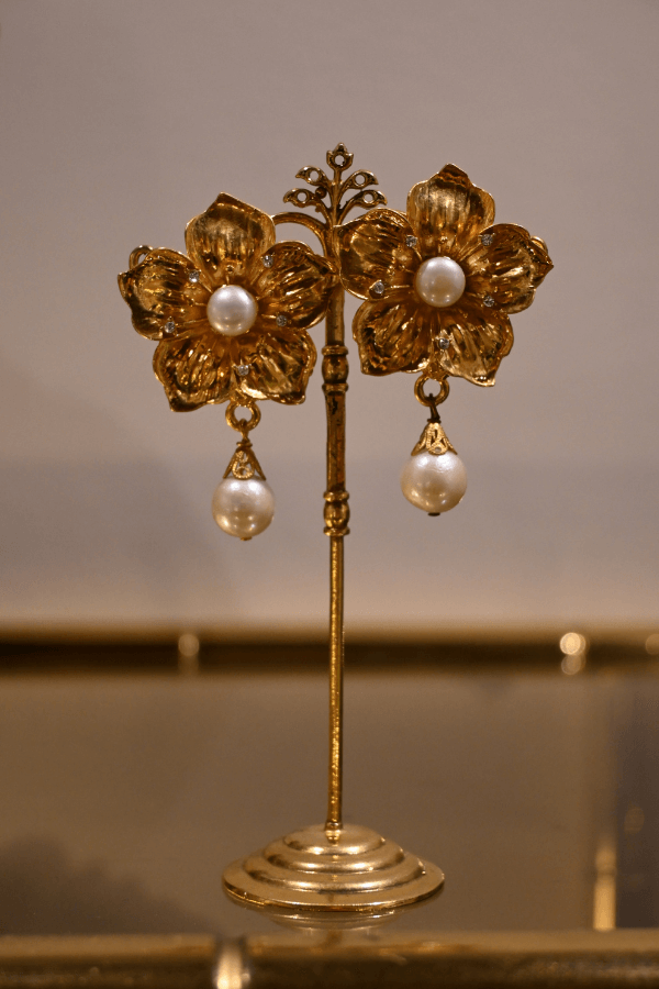 Beautiful Bold Flowery Earrings with fresh water pearl, perfect if you’re looking to for something special and fancy.