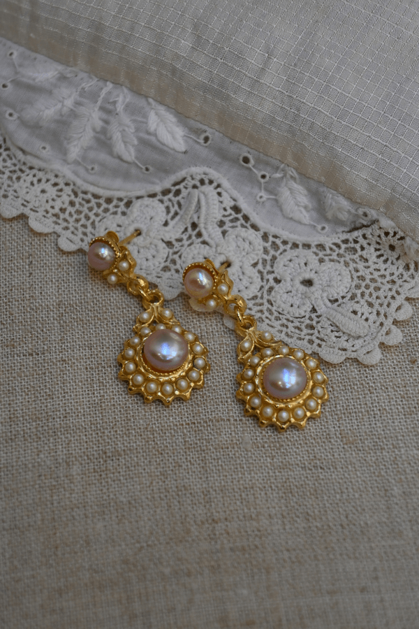 Like all the “Button” collection, a vintage vibe earrings, this time dangling.
